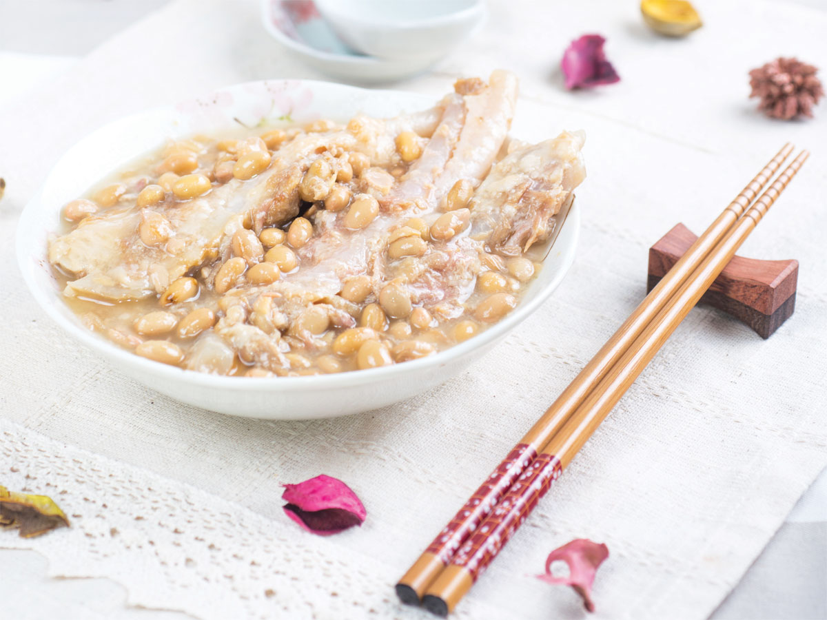 選用富含骨膠原的豬軟骨、顆粒飽滿的黃豆,按獨有食品生產工藝控制熱處理溫度燴至豬軟骨骨膠不爛而入口即化,亦釋放出黃豆香味。高蛋白物質,家中最佳下飯餸。