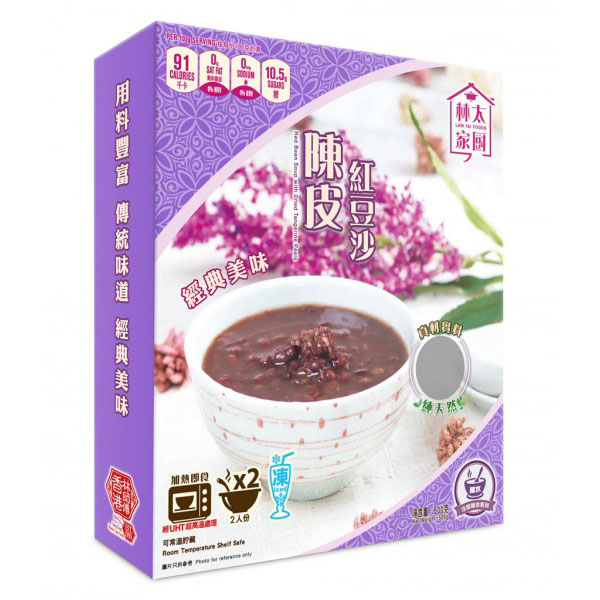 精選均勻飽滿紅豆,按獨有食品生產工藝控制熱處理溫度蒸煮紅豆原粒至最合適稔度,紅豆外殼 70 % 補液 (rehydration),創造最佳天然生化條件樣紅豆原味釋出自身澱粉致成的沙狀飲料。配合添加上精挑保氣陳皮,保徤外經穩定溫度熱抽提條件下陳皮香味與紅豆沙混為一體。百食不厭的甜品。此產品經超高溫處理,可在常溫長期保存。加熱即食,如凍食即開加雪糕也是另一最佳選擇。