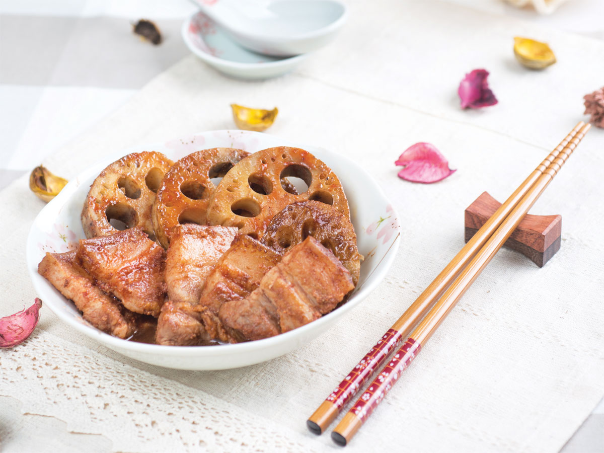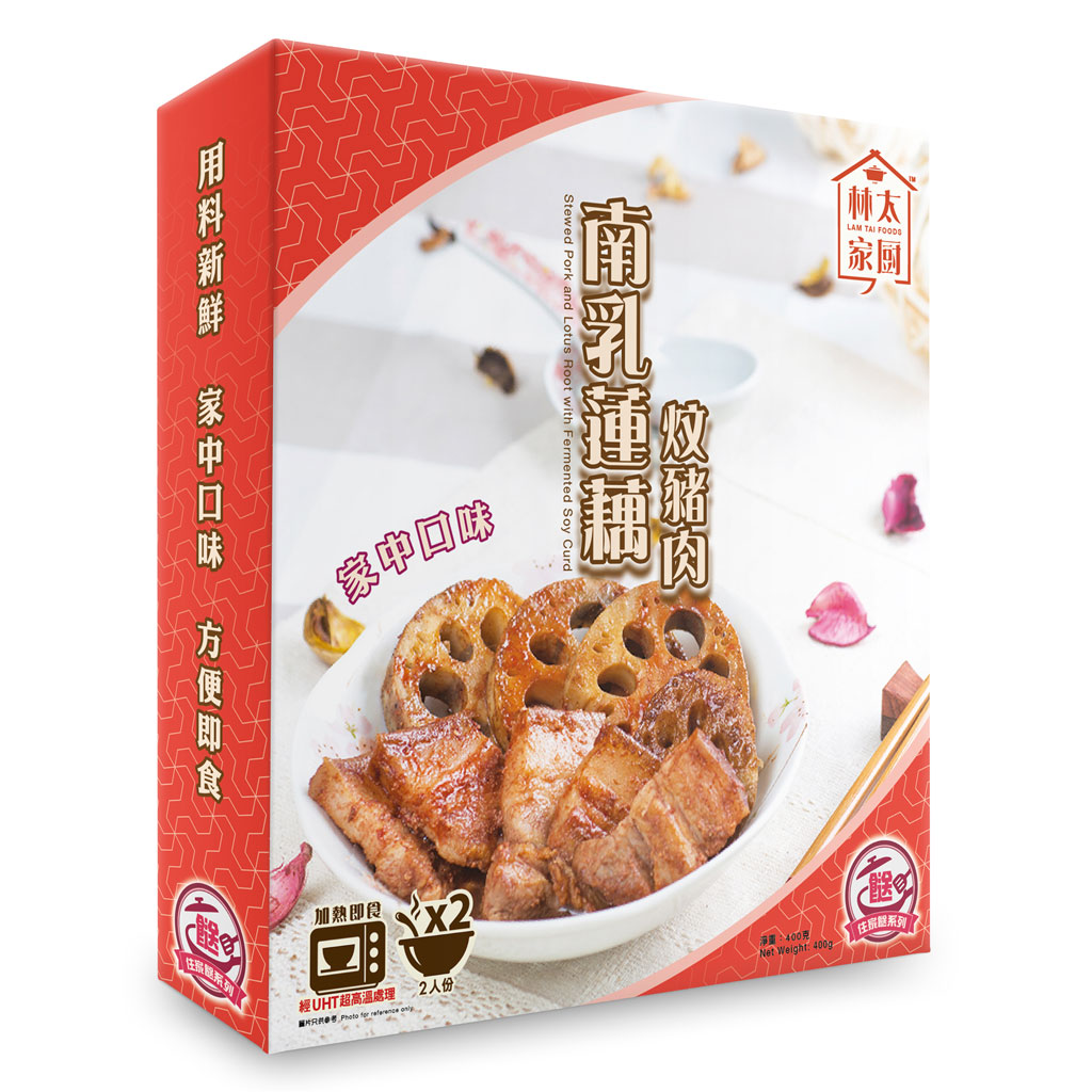 選用三層五花肉、新鮮嫩蓮藕配合南乳等調味料煸炒入味,再按獨有食品生產工藝控制熱處理溫度炆至豬肉、蓮藕味道互相滲透。加熱即食,家中最佳下飯餸。