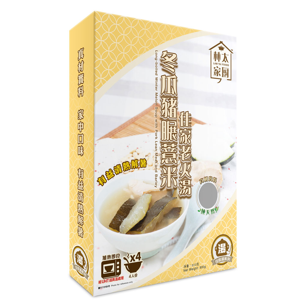 挑選淸熱解暑老冬瓜, 新鮮豬展肉, 薏米, 扁豆;此湯清甜美味, 老幼鹹宜。 按獨有食品生產工藝控制熱處理溫度煮至最合適如日常媽咪, 太太家中用心煲的老火湯般口味。享用日常家庭靚湯之餘亦省確煲湯時間, 亦因節能對環保作貢獻。此產品經高溫處理。可存放常溫保存。加熱即可食用。